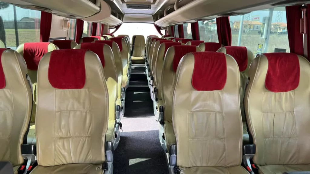 - Interni curati, con sedili confortevoli. Rispetto a quelle di un normale autobus cittadino, le sedute di un pullman GT sono infatti morbide ed ergonomiche, spesso reclinabili, pensate appositamente per il riposo dei passeggeri durante i lunghi spostamenti, ma anche per sistemare, in modo molto più agevole, borse, zaini, marsupi. Sono inoltre dotate di braccioli e poggiapiedi, con ampio spazio per le gambe.